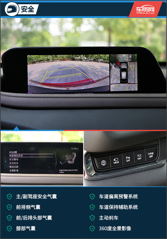 为了追求极致的驾驶操控体验,如今的马自达家族车型越来越重视安全,CX-30也不例外。新车搭载了丰富的主被动安全配置,除了常规的胎压监测、车身稳定系统、倒车雷达、倒车影像等,还配备了同级别少有的膝部气囊、HUD抬头数字显示等功能。而在辅助驾驶安全方面,新车还配备了并线辅助、车道偏离预警、车道保持辅助、主动刹车以及倒车车侧预警等,提供全方位的安全保护。