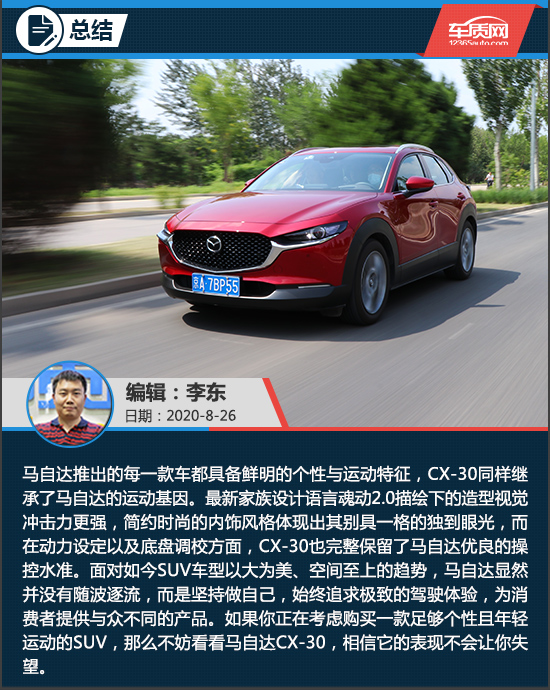 作为日系阵营中最讲究操控的品牌,马自达对于运动的追求已经到了极致的程度,并将其运动基因渗透到旗下每一款车型之中。即便是主打实用性的SUV车型,马自达依然会强调运动为先,甚至不惜牺牲其他因素。比如今天的主角马自达CX-30,虽然定位为紧凑型SUV,但却拥有“堪比”小型SUV的身材以及中型SUV的动力配置,而这一切,都是为了一个目标:运动。