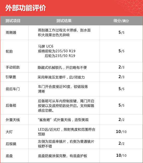 综合以上各项测试结果得出结论,2020款一汽-大众探岳X的整体表现符合预期。在车辆外部评价中,车身工艺可圈可点,整体接缝均匀性与漆膜喷涂厚度均表现不错,只是左后车门的漆面喷涂厚度较高,很有可能是重新喷漆所致。车辆内部评价中,中控台以及前后车门板处均辅以软质材料以及真皮包裹,触感不错,但大量硬质搪塑的使用导致在触感上略显廉价。此外,车内功能、车内空气质量、发动机隔音降噪以及震动抑制等方面,一汽-大众探岳X也展现出了不俗的水准,表现颇为亮眼。综合来看,2020款一汽-大众探岳X整体的商品性品质表现在同级别车型中处于中等偏上水平,符合车质网车辆商品性评价推荐标准。