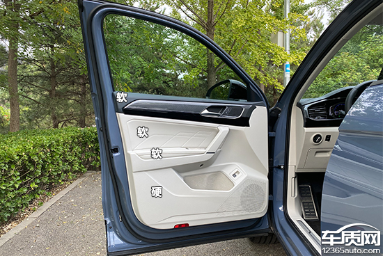 通过测试发现,2020款一汽-大众探岳X在A、B、C柱与顶棚护板的接缝处均均匀,间隙较小,做工出色。前/后车门内侧上半部分窗沿处为软质材料,车门把手及手枕处则辅以皮质包裹,确保了日常驾驶过程中手肘经常接触的地方均辅以柔软质地材料,而其余部分则为硬质搪塑。此外,全车车窗均采用了单层玻璃,实际体验隔音效果不错,行驶过程中的发动机噪音和胎噪都不算大,不会对车内人员造成过多滋扰。