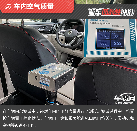 测试时,将车辆放置在车辆较少的内部地面停车场中,实测2020款一汽-大众探岳X的车内未含有甲醛成分,完全符合2012年3月1日起实施的,由环保部和国家质量监督检验检疫总局联合发布的《乘用车内空气质量评价指南》(中华人民共和国国家标准GB/T 27630-2011)中的相关标准。