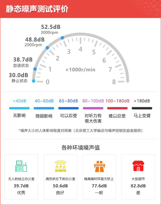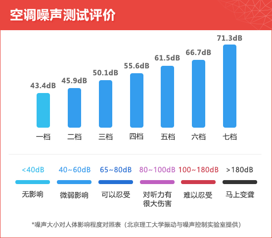 此外,我们还对空调噪声进行了测试。测试时仪器距离空调出风口大约10cm,将空调风量由小到大依次调高,并在各种挡位下分别测试车内的噪音数值。经实测,空调在开启第五档风量时噪音数值已经超过了60dB,最高的第七档达到了71.3dB,可见在开启大风量迅速升/降温或者通风时噪音会比较大,而经常使用的一至四挡风量区间,噪音值比较合理,不会对车内人员造成滋扰。