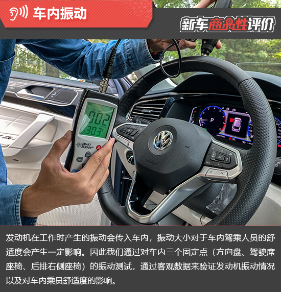 经过实测,在怠速状态下,2020款一汽-大众探岳X发动机传入车内的振动被抑制的不错,无论是怠速还是开启空调后的负载情况,方向盘以及前/后座椅处测得的数据变化均不太明显,震动传递均不容易被感知。