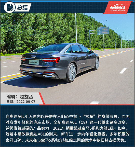 缘分这件事真是个奇妙的存在,依稀记得这一代奥迪A6L(C8)刚刚上市,我便与其有了一次零距离的试驾体验。如今,中期改款奥迪A6L再一次来到我的面前。随着与2023款奥迪A6L接触时间越来越长,我不禁发现它向年轻化更进了一步,同时也窥探出奥迪A6L每每迭代更新所秉承的理念——“稳中求进”。