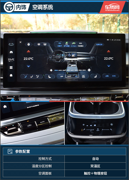 空调方面,温度、风量、风向以及除雾等相关功能,均整合到了中控屏幕当中,以触控方式操作,各类功能布局直观清晰,一目了然。另外,在中控屏下部,还保留有关于风量、温度等功能控制的物理按键,有效提升了驾驶时盲操作的准确率。当然,关于空调的相关控制,智能语音助手可以统统搞定,包括“我好热”这种模糊语义指令也能实现精准识别,执行迅速。车内PM2.5过滤装置是嘉际L全系的标准配置,在这台顶配的试驾车型上,还搭载有车载空气净化器,在当下特殊时刻,呵护呼吸健康。