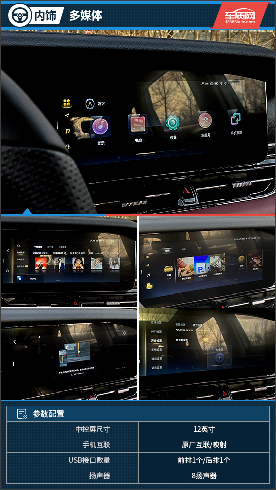 12英寸多媒体触控屏内置最新的D-Life 5.0 plus系统,UI界面经过重新调整,交互触及率提升了11%。同时,车机还内置了手机互联功能,通过手机端app可以将第三方内容投射在多媒体屏幕上,反之,通过触控屏还可以反控手机,进而实现操作无缝衔接。此外,系统还提供了在线音乐功能,配合AIkamys 3D音效,有着不错的聆听效果,在非品牌音响中有着中上游的水准。