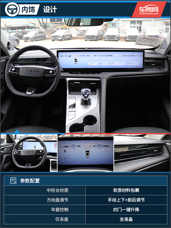 第三代荣威RX5内饰较为简洁,并且采用了大量软质材料包裹,提升了内部档次感。最引人注目的是27英寸超大屏幕,它可在主驾驶和副驾驶之间滑动300mm,以满足前排人员使用需求。三辐式多功能平底方向盘在两侧进行了打孔处理,握持感舒适,两侧多功能按键采用了钢琴烤漆按键和银色摇杆设计,手感非常细腻。