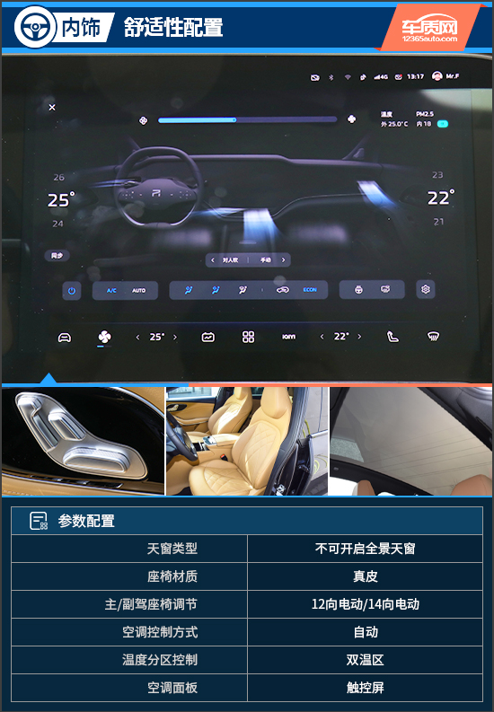 在舒适性方面,新车采用了双温区自动空调,其操作面板都被集成在了这套车机系统中,除了手动进行触控屏的操作以外,用户还可以通过语音来控制空调功能。值得一提的是,在实测中,车辆可以区分“我有点冷/热”和“我很冷/热”的差别,并对温度进行相应的调节。