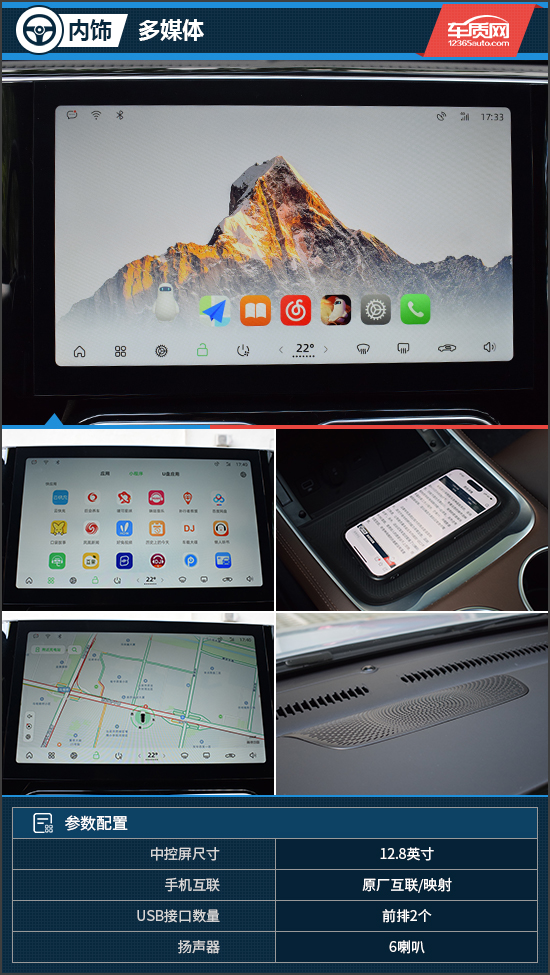 12.8英寸中控屏的分辨率和色彩饱和度较高,提供了不错的观感体验。在功能性上,包括车联网、智能语音交互以及OTA升级都有支持,而且操作流畅性出色,满足日常使用没有问题。需要注意的是,车辆中控台没有任何实体按键,甚至外后视镜调节,都没有单独的物理按键,所以车内绝大部分功能控制都需要在中控屏内完成,需要一定的学习成本。
