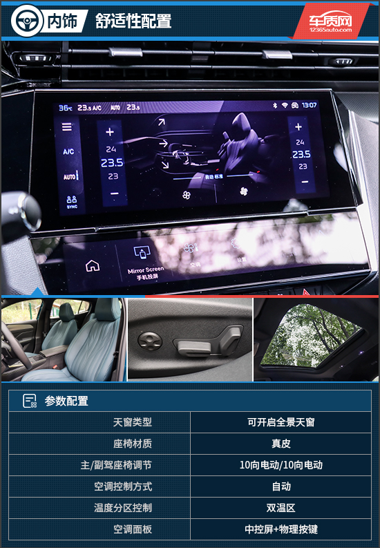 舒适性配置方面,东风标致408X拿出了很大的诚意。包括真皮座椅、前排座椅电动调节、前排座椅加热、可开启全景天窗、双温区自动空调、后座出风口、车载空气净化器以及车内PM2.5过滤装置等都有提供,基本可以满足日常使用所需,整体表现可圈可点。