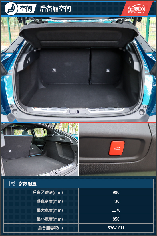溜背式设计带来了非常可观的尾门开启面积,后备厢内部空间规整,常规状态下容积为536L,满足一般家用不成问题。后排座椅支持比例放倒,但美中不足的是,将座椅放倒后并不能与后备厢地板形成纯平的储物空间。虽然我们不能以SUV的标准来要求这样一款带有跨界元素的中型车,但如果能够表现得再完美一些,那肯定会更好。