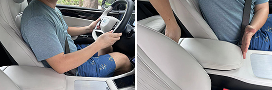 2023款吉利银河L7中央扶手面积适中,采用固定设计,在正常驾驶坐姿下,驾驶员手肘能够轻松倚靠在上面。此外,中央扶手还采用了软质材料包裹,手感较为舒适。