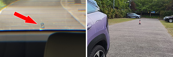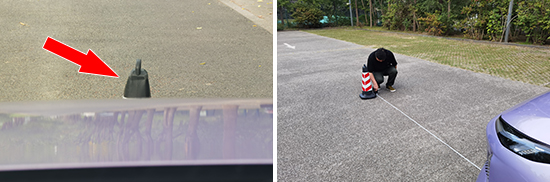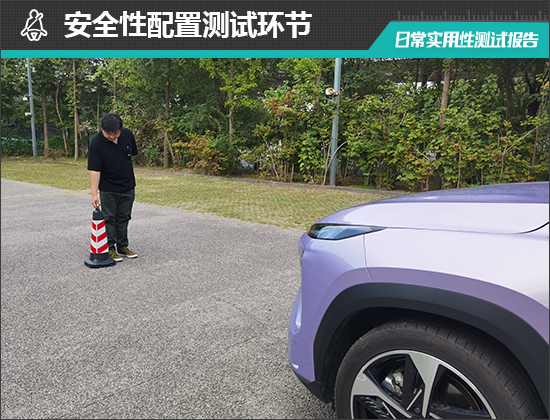 在测试前方视野环节,我们采用高70cm的桩桶作为参照物,随后调整车距,直至在主驾驶位可以看到桩桶上沿。经过测试,桩桶与车头最终测得的数据为2.50m,在测试过的同级别车型中处于上游水平。