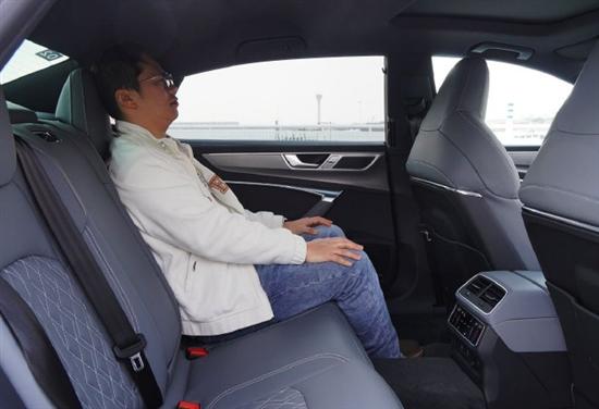 在空间表现方面,新上汽奥迪A7L相比进口A7有着一定的优势,不仅后排腿部空间更大,头部空间也变得更加宽松,身高173CM的体验者整体坐姿舒展。在本次活动的3.0T车型版本上,后排座椅靠背还支持前后电动调节,通风加热以及按摩功能。当然,如果你想享受这些,是要多付出一些银子的。