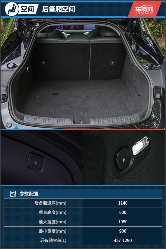 后备厢内部规整,加之掀背式尾门带来的硕大开口,空间利用率很高。同时,车内还配备了一个12V电源接口,便于给车载冰箱等移动设备供电。此外,后排座椅支持4/6比例放倒,扩展能力出色。
