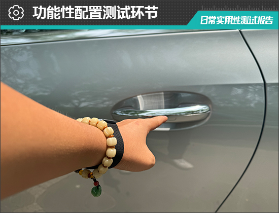 在功能性配置方面,评测车配备了全车无钥匙进入功能,携带遥控钥匙或蓝牙钥匙走到车旁车辆便可自动解锁,便利性非常不错。经多次测试,该功能感应十分灵敏,且未出现失效情况。一键启动按键位于方向盘右侧,位置合理且标识清晰,日常操作十分方便。