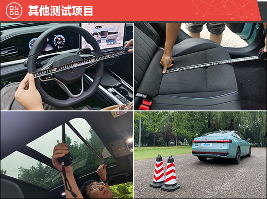 此外,我们还针对驻车雷达、灯光/视野、操控系统、轮胎、天窗、座椅、后备厢进行了测试。经过测试,2025款上汽大众帕萨特Pro的方向盘和驾驶席座椅调节范围较大,能够适应不同身高的驾驶员。后排座椅支持电动调节靠背角度,提供舒适的乘坐体验。评测车配备韩泰Ventus Prime 4系列轮胎,主打性能和操控,具备出色的干湿地制动性能,轮胎规格为245/40 R19。相对而言,后方视野盲区较大,另外后排座椅座垫长度偏短,均有待优化。