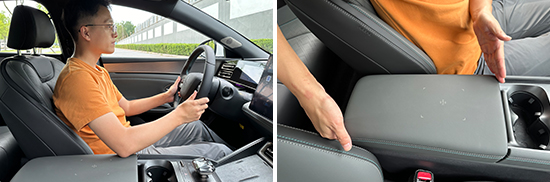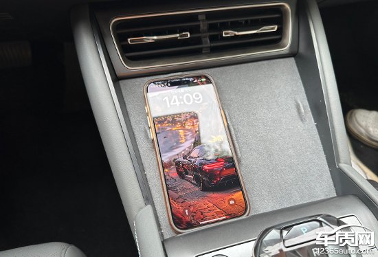 评测车在前排还配备了1个手机无线充电板,充电功率为15W,位于换挡杆前方,拿放手机十分便捷,日常使用便利性不错。
