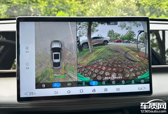 评测车配备了360度全景影像,并带有随动转向的倒车辅助线,且画质清晰度较高,实用性表现出色。