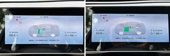 此外,对于充电效率我们也进行了测试。实测人员使用快充桩充电10分钟后(波峰用电),电量从15%充至39%,续航里程增加了29km,与车辆电脑预计的用时基本吻合。