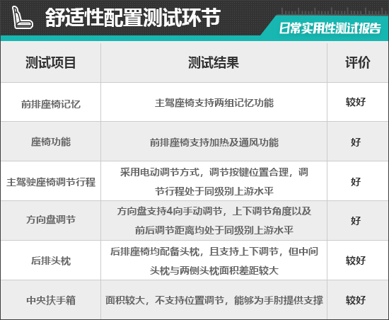 二、舒适性配置测试环节