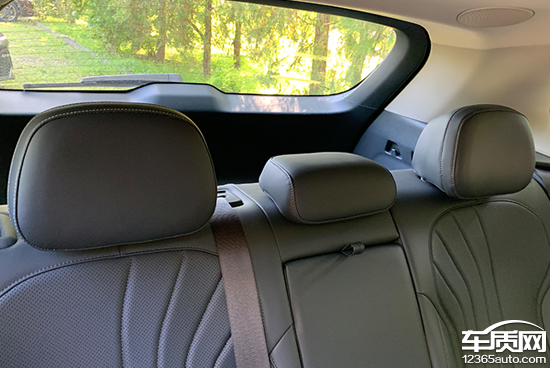 评测车的后排座椅配备了三个头枕,均支持上下调节。中间头枕虽然尺寸略小,但也可以为后排乘客头部提供一定的支撑。三个头枕的填充物较为柔软,保证了舒适的乘坐体验。