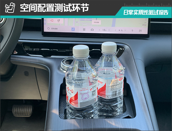 经过实测,除墨镜之外,其他固定物品均可以合理地放置在评测车前排各个储物空间内。评测车的后排杯架没有提供限位器,在细节方面有待提升。