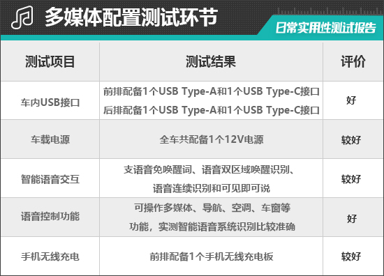 经过实测,评测车能够识别全部指令,语音识别准确,反应速度较快。此外,评测车还支持语音免唤醒词、语音双区域唤醒识别、语音连续识别和可见即可说,便利性表现不错。
