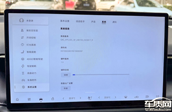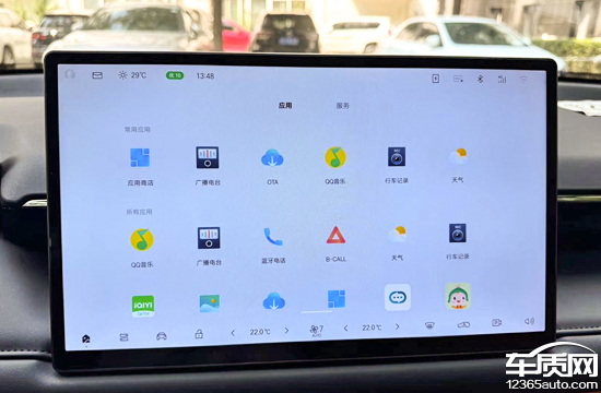 评测车搭载了ADiGO车载智能系统,由于车机未联网,所以无法确认系统是否为当前最新版本。经实测,在持钥匙靠近车辆自动解锁时屏幕就会快速点亮,响应速度很快,当第一眼看到车机时已经启动,体验感不错。