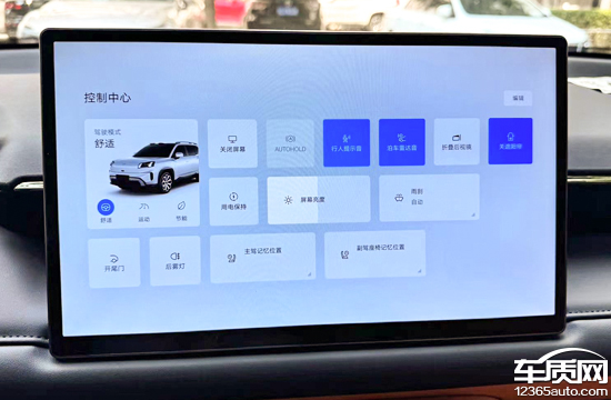 评测车的车机系统界面采用了类似平板电脑的布局方式,底部Dock栏支持左右滑动。下拉菜单为控制中心,可快速执行如AUTO HOLD、行人提示音、折叠外后视镜以及开启尾门等操作。值得一提的是,主界面和下拉菜单均支持自定义,满足了不同用户的使用习惯。