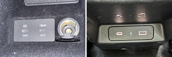 在车内USB接口方面,评测车前排配备2个USB Type-C接口、后排配备1个USB Type-C和1个USB Type-A接口。同时,全车还配备了2个12V电源。