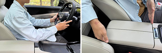 前排中央扶手造型规整且尺寸适中,表面采用软性材质包裹,枕靠舒适性不错。中央扶手虽然不支持前后移动和角度调节,但驾驶者在驾驶过程中依然可以将肘部搭在上面。