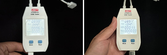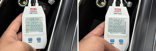 此外,我们对USB接口的电压与电流进行了测试,其中前排USB Type-C接口的电压和电流分别达到9.14V、1.44A和9.23V、1.45A左右。后排USB Type-C和USB Type-A接口的电压和电流分别为8.98V、1.44A和8.97V、1.34A左右。