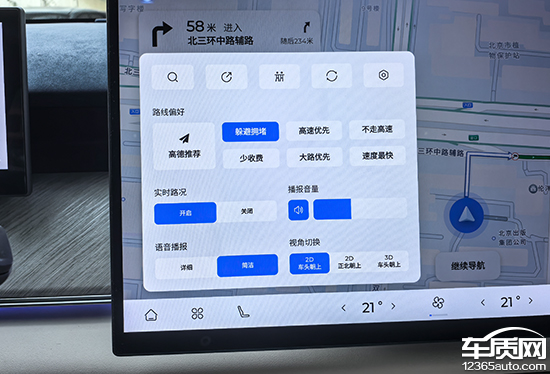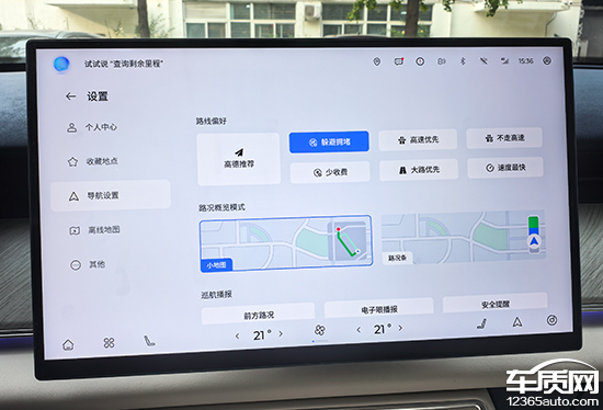 在导航设置中,路线偏好支持多种选择,常规的功能及设置基本都有提供,日常使用十分便捷。比较遗憾的是,除了详细或简洁的语音播报,其并未提供语音包选择,个性化方面尚存在优化空间。