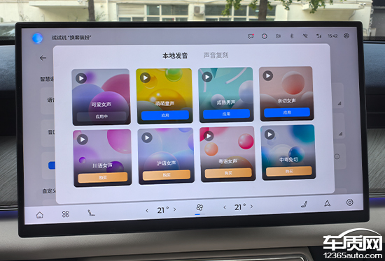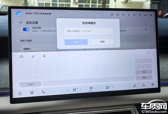 在语音交互方面,评测车内置虚拟形象“小奇”,可以定制装扮以及不同的音效,除了众多本地发音外,还支持声音复刻。语音助手能够实现诸多功能,包括全时对话以及主动关怀等。实测来看,这套语音系统还是能够比较快速精准地执行指令。此外,用户还可以自定义唤醒词,满足个性化需求。