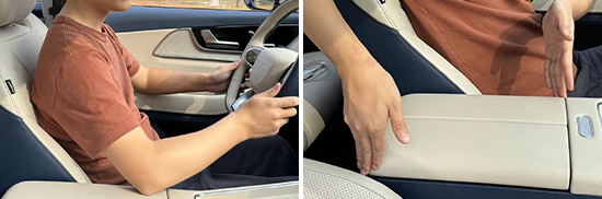 前排中央扶手尺寸适中,得益于软质材料包裹,触摸手感相当不错。中央扶手虽然不支持前后移动和角度调节,但驾驶者在驾驶过程中依然可以将肘部搭在上面。