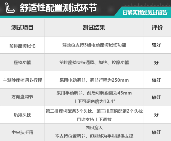 二、舒适性配置测试环节
