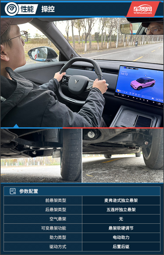 岚图知音采用前麦弗逊式+后五连杆独立悬架的组合,并配备了CDC可调阻尼悬架功能,在急加速时可控制车身俯仰;在过弯时可保持良好的车身姿态,能够带来不错的驾驶乐趣。并且悬架对路面的大小颠簸过滤的也非常彻底,可以动态适应各种路况,是非常适合年轻消费者的调校。
