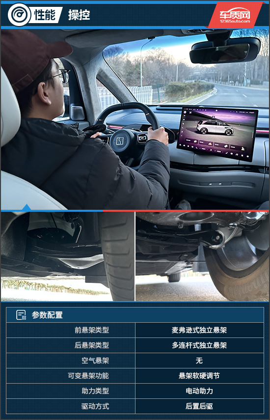 转向的手感非常轻盈,即便是女士也很容易上手。而随着车速增加,方向盘也会随之变沉,增加高速行车时的安全性。NVH方面,凭借前排双层隔音玻璃,评测车的整体表现可圈可点,只有在高速行驶时,能够感受到一定的风噪声,但不会影响到车内人员的驾乘舒适性。