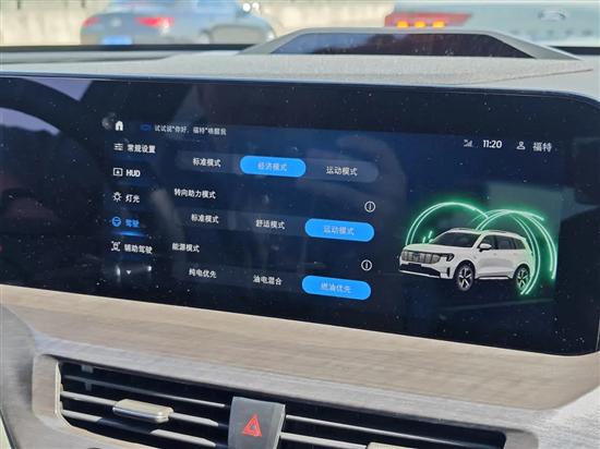 领裕PHEV有着三种动力模式,经济模式下动力响应会慢上不少,运动模式下油门踏板则会有些过于灵敏,标准模式下的动力输出调校得很舒服,也是试驾过程中我最喜欢使用的动力模式。