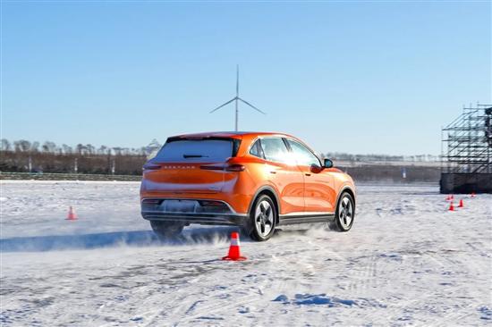 转向的手感轻盈但不失精确,搭配优化的底盘调校,整车在过弯时并没有因冰面而表现出明显的不安定感。尤其是在我尝试激烈驾驶时,车辆始终在极限边缘保持从容,没有“失控”的一丝迹象。