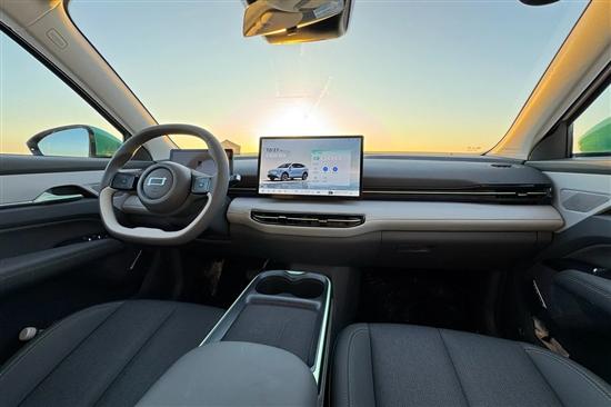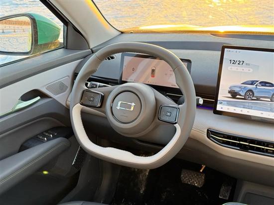 车内的设计同样没有刻意“讨好”谁而是以一种低调的方式去满足每一位乘客的需求。整体设计是相对常见的新能源汽车的车内布局,一块全液晶仪表,一块中控悬浮式大屏,简约的线条,极简的设计。另外空间部分确实让我感到意外,四米四出头的车身长度下拥有2750毫米的轴距,这无疑保证了后排的腿部空间,即便是身高接近一米八的成年人也能轻松坐直。触感柔软的座椅和温暖的加热功能更是在这个零下二十度的冰天雪地里让我倍感舒适。