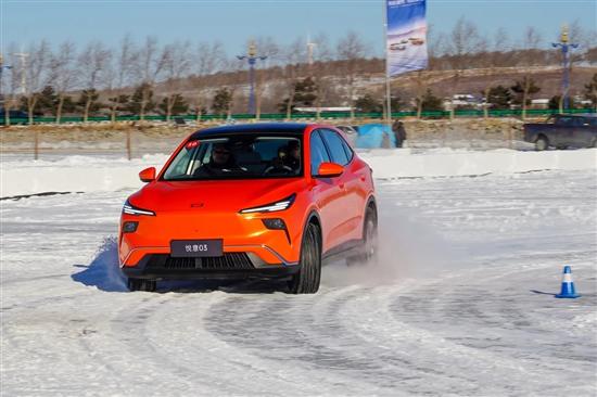 我特意在一段较长的直路上尝试加速,悅意03的动力输出没有电动车那种“踩下去就猛冲”的粗暴,而是线性且稳健。轻轻踩下加速踏板,车身迅速但平稳地向前滑去,仿佛车轮下的冰雪只是常规的柏油路面。这种从容感,不是夸张的性能所能替代的,而是车辆对驾驶者的一种温柔反馈。