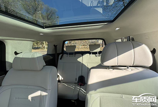 评测车的前排、第二排及第三排各配备2个Type-C接口。此外,中控台下方还配有1个12V电源接口,后备厢还拥有1个220V电源,能够满足车内乘客电子设备的用电需求。
