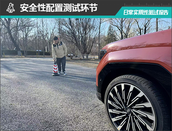 在测试前方视野环节,我们采用高70cm的桩桶作为参照物,随后调整车距,直至在主驾驶位可以看到桩桶上沿。经过测试,桩桶与车头最终测得的数据为3.345m,在测试过的同级别车型中处于下游水平。
