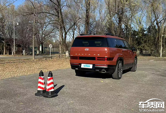 后方视野测试中,依旧将桩桶固定摆放,随后移动车辆直至可以观察到桩桶上沿为止。经实测,后方视野所测得的距离为13.411m,在测试过的同级别车型中处于上游水平。