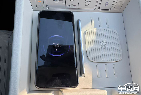 评测车在前排还配备了2个手机无线充电板,位于杯架前方,拿放手机十分便捷,日常使用便利性不错。不过,两块无线充电板均未配备散热口,长时间充电需留意手机发热情况。