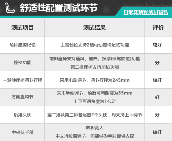 二、舒适性配置测试环节