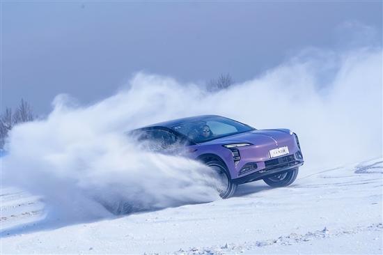 除了日常驾驶场景之外,我们还享受了一下难得的在冰湖上开车的乐趣,此时线性动力的优点得到再次凸显。因为冰湖的附着力很低,如果动力输出过大,很容易造成打滑。天工08的动力本就线性,再加上雪地模式的自动控制,让车辆在冰雪路面依然可以稳健的起步和提速。