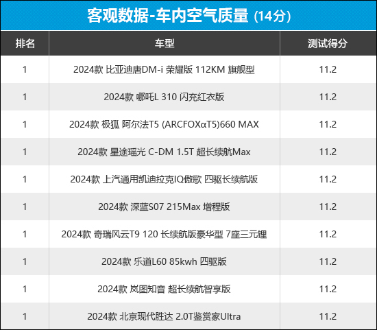 通过榜单排名可以看出,10款车型均达到了评价标准,但均因车内检测出微量甲醛成分而导致失分。
